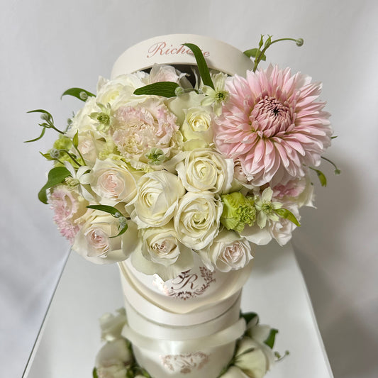 【Sサイズ】ピンクダリアを添えたホワイトピンクアレンジメント