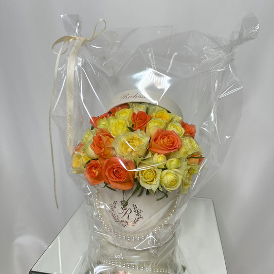 【Sサイズ】オレンジバラと黄色いバラのアレンジメント