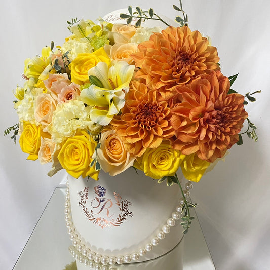 【Mサイズ】オレンジダリアとビタミンカラーのアレンジメント
