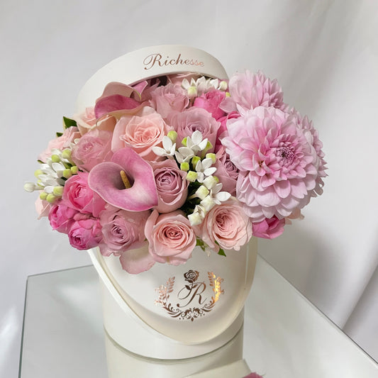 【Sサイズ】ピンクダリアとカラーのアレンジメント