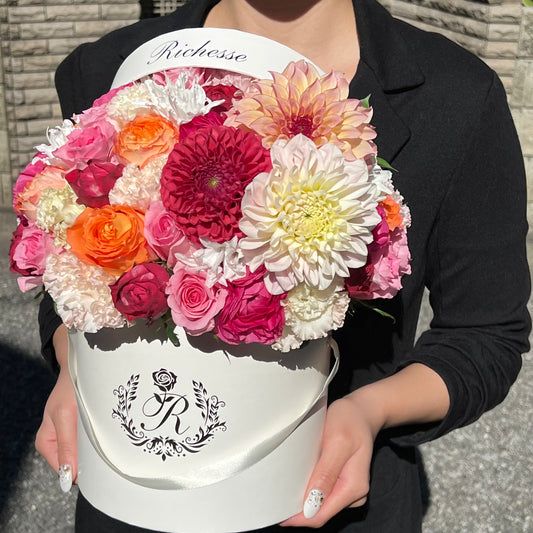 【Mサイズ】ダリアとラナンキュラスのビビットカラーアレンジメント