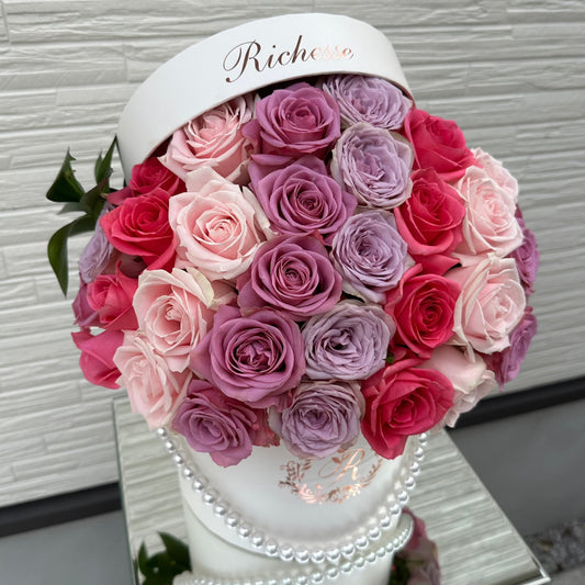 【Mサイズ】4種のバラをつかったピンクパープルアレンジメント