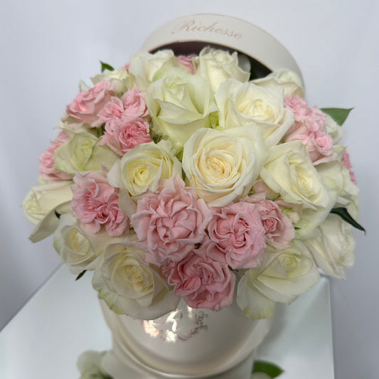 【Sサイズ】白とピンクのミニバラアレンジメント